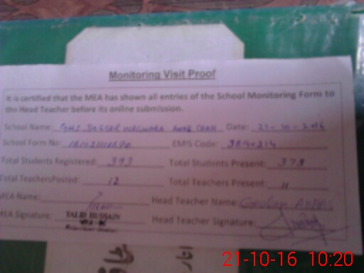 | EMIS Code: 38140214 | Name of School: GHS DAGGAR WAGWARA ANAR SHAH | |||