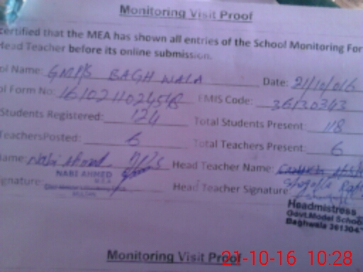 | EMIS Code: 36130343 | Name of School: GMPS BAGH WALA NEAR B Z UNIVERSITY | |||