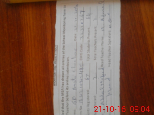 | Attendance Register | Head Teacher | MEA with School | Visit Proof |
