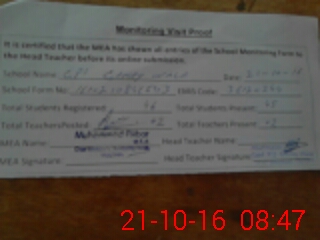 | Attendance Register | Head Teacher | MEA with School | Visit Proof |