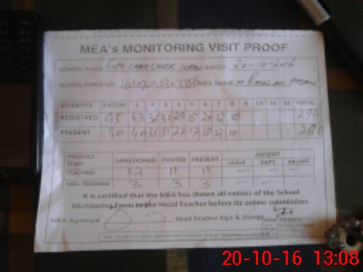 | Attendance Register | Head Teacher | MEA with School | Visit Proof |