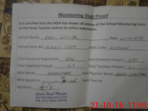| Certified that this School was Inspected by the Undersigned MEA/DMO Today and the Information Stated Above is as Per Record. | |||||