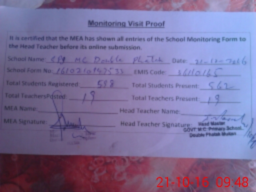 | EMIS Code: 36110165 | Name of School: GPS MC DOUBLE PHATAK VEHARI ROAD MULTAN | |||
