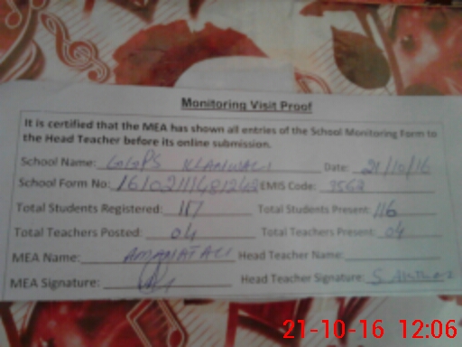 | Attendance Register | Head Teacher | MEA with School | Visit Proof |