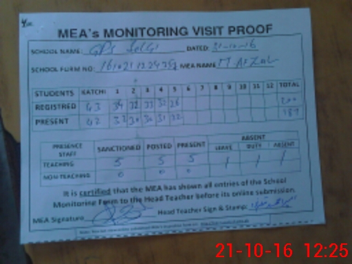 | Certified that this School was Inspected by the Undersigned MEA/DMO Today and the Information Stated Above is as Per Record. | |||||