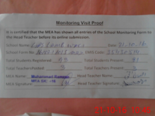 | EMIS Code: 35430514 | Name of School: GPS LAMB WALI JADEED | |||