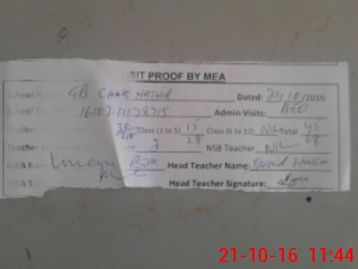 | Attendance Register | Head Teacher | MEA with School | Visit Proof |