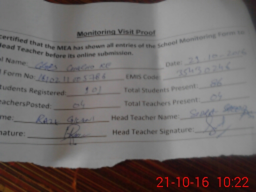 | Attendance Register | Head Teacher | MEA with School | Visit Proof |