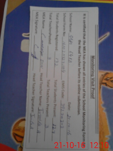 | Certified that this School was Inspected by the Undersigned MEA/DMO Today and the Information Stated Above is as Per Record. | |||||