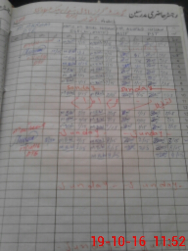 | CNIC | Full Name | Designation | R/C | Absence During Last Calender Month |