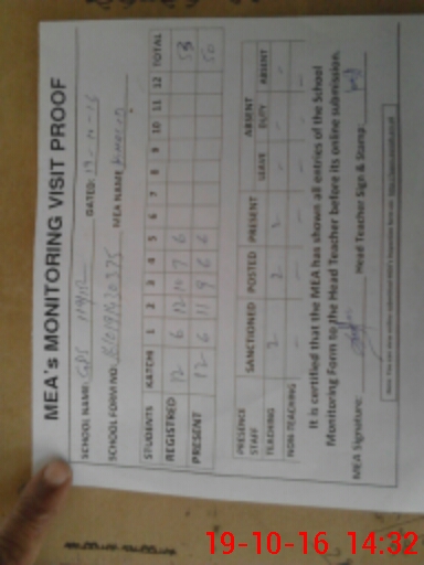 | Attendance Register | Head Teacher | MEA with School | Visit Proof |