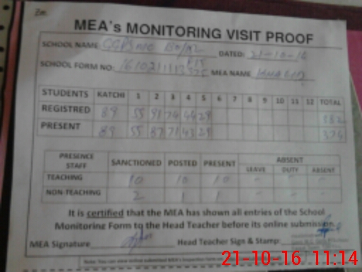| Certified that this School was Inspected by the Undersigned MEA/DMO Today and the Information Stated Above is as Per Record. | |||||