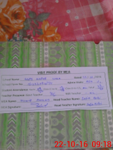 | Attendance Register | Head Teacher | MEA with School | Visit Proof |