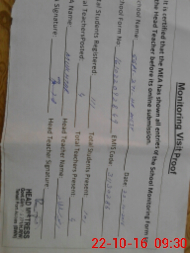 | Certified that this School was Inspected by the Undersigned MEA/DMO Today and the Information Stated Above is as Per Record. | |||||