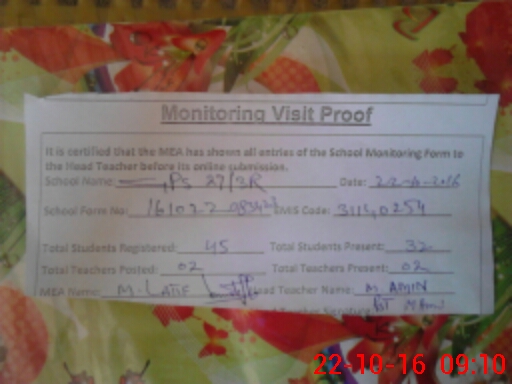 | Certified that this School was Inspected by the Undersigned MEA/DMO Today and the Information Stated Above is as Per Record. | |||||