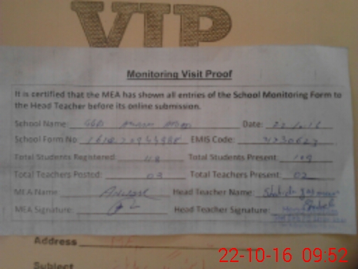 | Certified that this School was Inspected by the Undersigned MEA/DMO Today and the Information Stated Above is as Per Record. | |||||