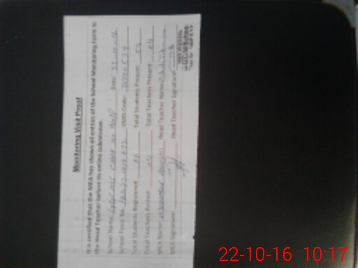 | Monitoring Date: 22-10-2016 | Start Time: 22-10-2016 09:34 AM | End Time: 22-10-2016 10:21 AM | Name of MEA: Mu**** Am**** | |