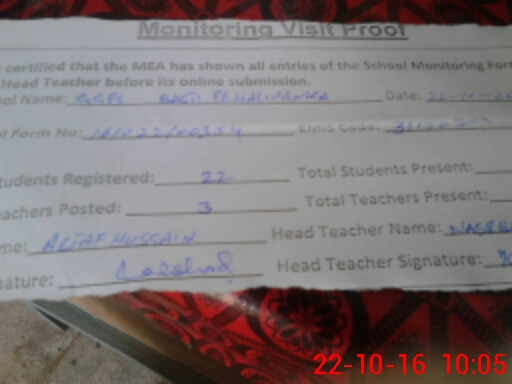 | Certified that this School was Inspected by the Undersigned MEA/DMO Today and the Information Stated Above is as Per Record. | |||||