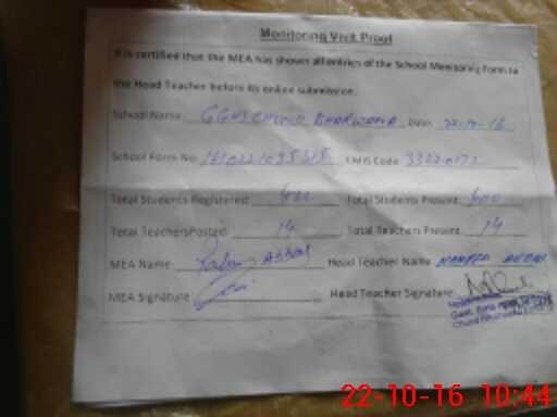 | Attendance Register | Head Teacher | MEA with School | Visit Proof |