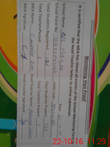 | Certified that this School was Inspected by the Undersigned MEA/DMO Today and the Information Stated Above is as Per Record. | |||||