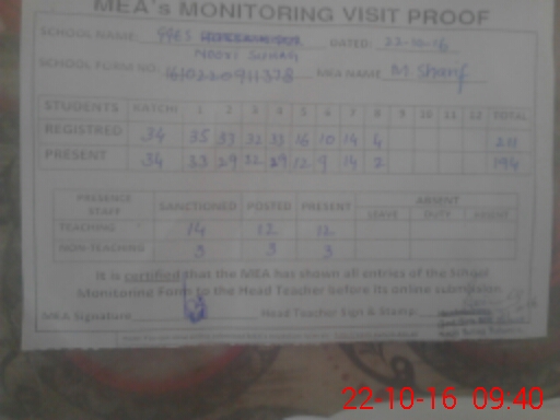 | Certified that this School was Inspected by the Undersigned MEA/DMO Today and the Information Stated Above is as Per Record. | |||||
