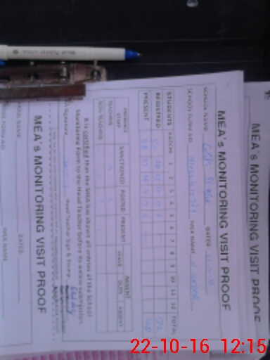 | Monitoring Date: 22-10-2016 | Start Time: 22-10-2016 11:49 AM | End Time: 22-10-2016 12:16 PM | Name of MEA: M.Is**** (S**** 03**** | |