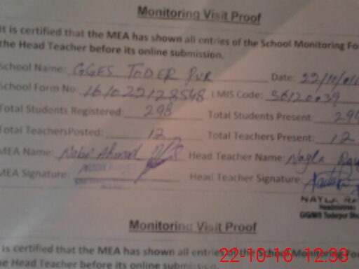 | Certified that this School was Inspected by the Undersigned MEA/DMO Today and the Information Stated Above is as Per Record. | |||||