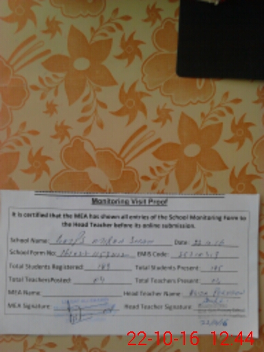 | Attendance Register | Head Teacher | MEA with School | Visit Proof |