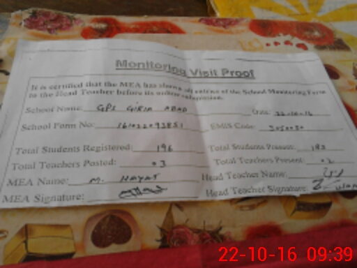 | EMIS Code: 31150050 | Name of School: GPS GIRIA ABAD | |||