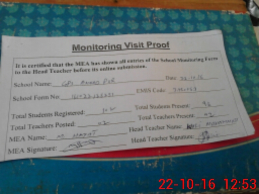| EMIS Code: 31150053 | Name of School: GPS ANNAD PUR | |||