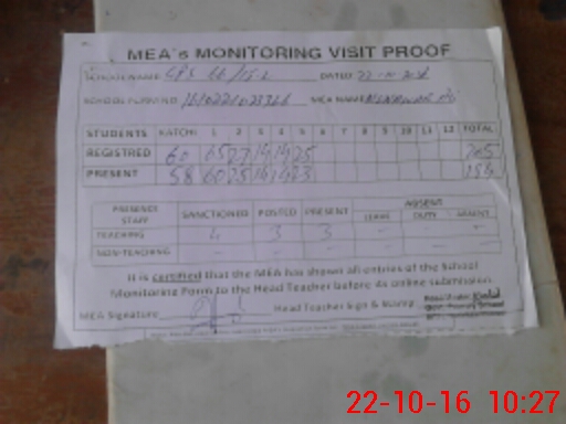 | Attendance Register | Head Teacher | MEA with School | Visit Proof |