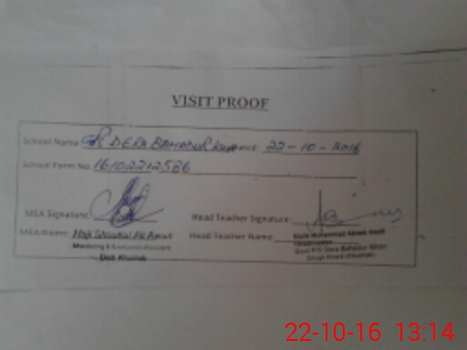 | EMIS Code: 38210168 | Name of School: GPS DERA BAHADUR KHAN | |||