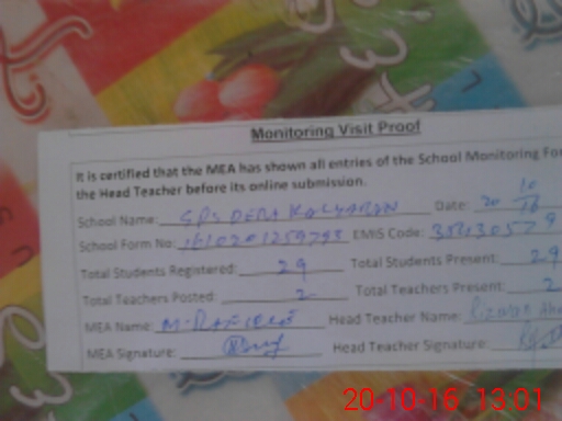 | Attendance Register | Head Teacher | MEA with School | Visit Proof |
