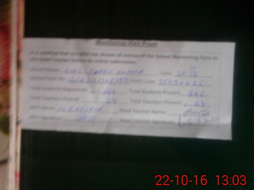| School Visited by School Health & Nutrition Supervisor (No. of Visits) | 1 | Name1: | Sami Ullah | Name2: | |