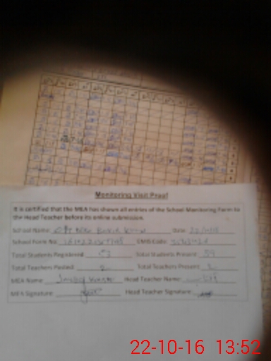 | Attendance Register | Head Teacher | MEA with School | Visit Proof |