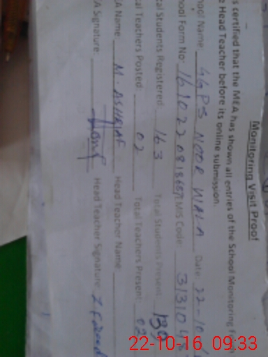 | Certified that this School was Inspected by the Undersigned MEA/DMO Today and the Information Stated Above is as Per Record. | |||||