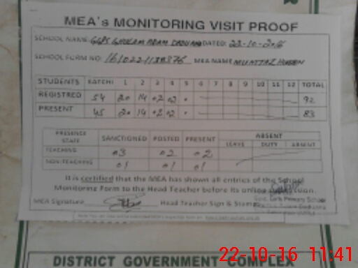 | Certified that this School was Inspected by the Undersigned MEA/DMO Today and the Information Stated Above is as Per Record. | |||||