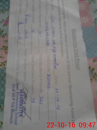 | Certified that this School was Inspected by the Undersigned MEA/DMO Today and the Information Stated Above is as Per Record. | |||||