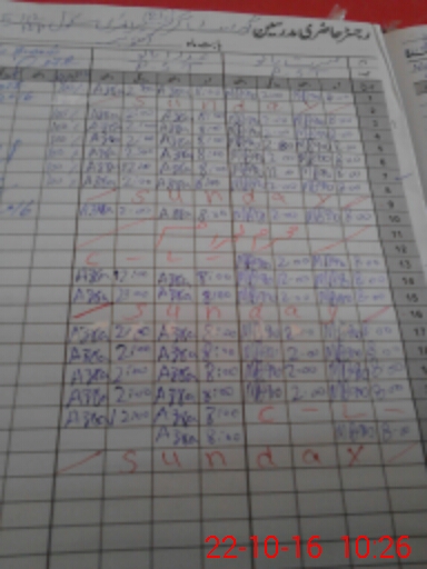 | CNIC | Full Name | Designation | R/C | Absence During Last Calender Month |