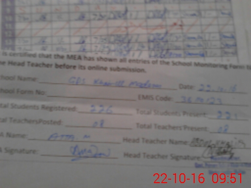 | Certified that this School was Inspected by the Undersigned MEA/DMO Today and the Information Stated Above is as Per Record. | |||||