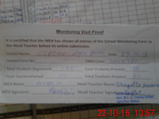 | Certified that this School was Inspected by the Undersigned MEA/DMO Today and the Information Stated Above is as Per Record. | |||||