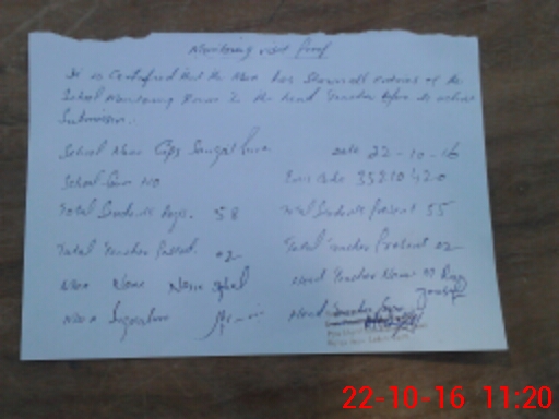 | Attendance Register | Head Teacher | MEA with School | Visit Proof |