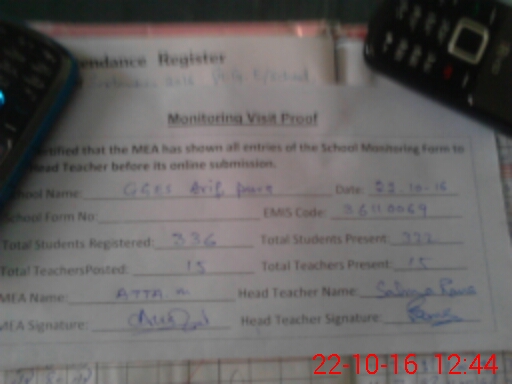 | Attendance Register | Head Teacher | MEA with School | Visit Proof |