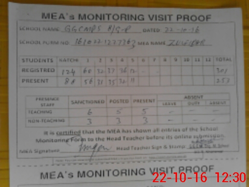 | Certified that this School was Inspected by the Undersigned MEA/DMO Today and the Information Stated Above is as Per Record. | |||||