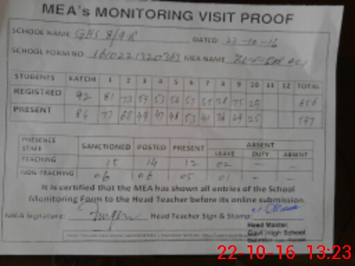 | Certified that this School was Inspected by the Undersigned MEA/DMO Today and the Information Stated Above is as Per Record. | |||||