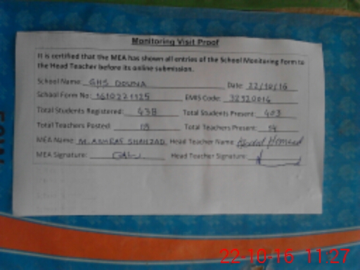 | Certified that this School was Inspected by the Undersigned MEA/DMO Today and the Information Stated Above is as Per Record. | |||||