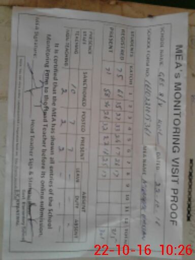 | Certified that this School was Inspected by the Undersigned MEA/DMO Today and the Information Stated Above is as Per Record. | |||||