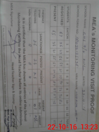 | Certified that this School was Inspected by the Undersigned MEA/DMO Today and the Information Stated Above is as Per Record. | |||||