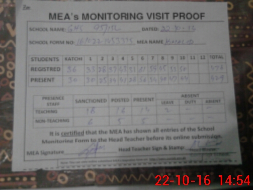 | Certified that this School was Inspected by the Undersigned MEA/DMO Today and the Information Stated Above is as Per Record. | |||||