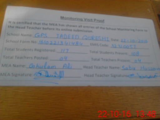 | EMIS Code: 32310057 | Name of School: GPS JADEED QURESHI | |||
